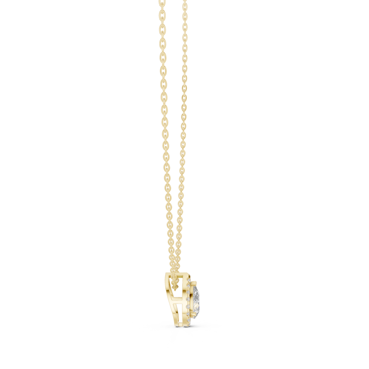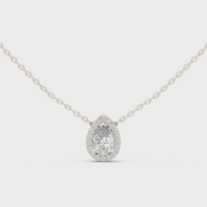 Pear-Shaped Diamond Halo Solitaire Pendant Necklace